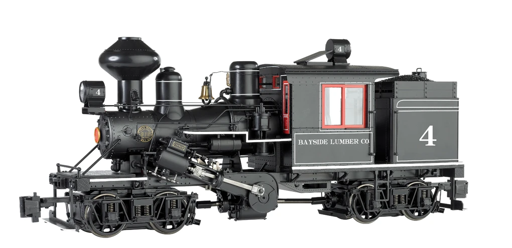 • super-detailed power trucks with accurate sideframes, brake beams, brake hangers, brake shoes, and distinctive Climax spoked drivers