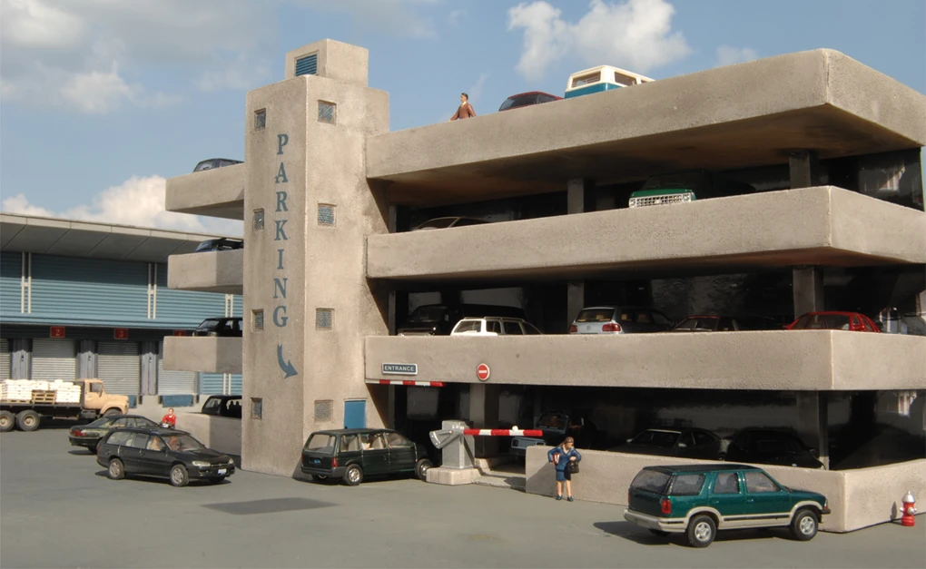 SceneScapes™ HO scale False-Front Resin Buildings have realistic details and colors to let you add space-saving buildings to your railroad. Measures 12″ W x 3?” D x 6½” H. Includes photo background of garage interior.
